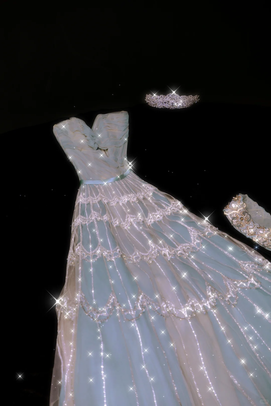 Stunning Ball Gown Strapless Rhinestone Sequin Tulle Long Prom Dress SH3242