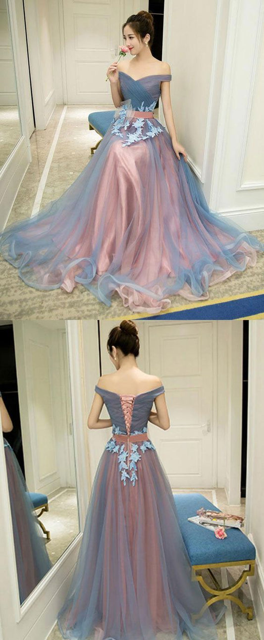 A Line Tulle Off Shoulder Formal Dress Long Party Dress Evening Dress Prom Dresses cg25725