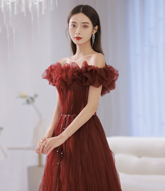 Tulle Long Prom Dress, A-Line Off Shoulder Evening Dress fg5701