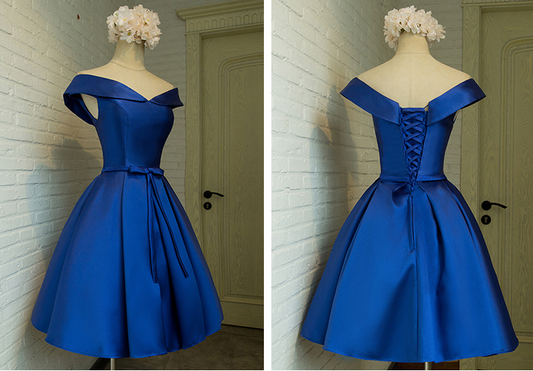 Cute off shoulder satin short prom dress,homecoming dresses 7644