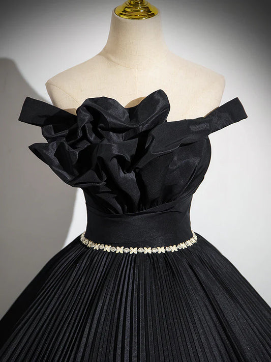 A-Line Off Shoulder Black Long Prom Dress, Black Long Evening Dress ED082