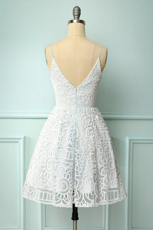 White Lace A-line Short Dress Homecoming Dress fg3744