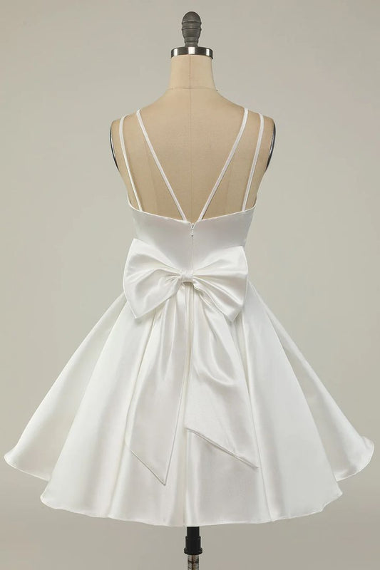 Double Straps White Satin Short Homecoming Party Dress fg3760