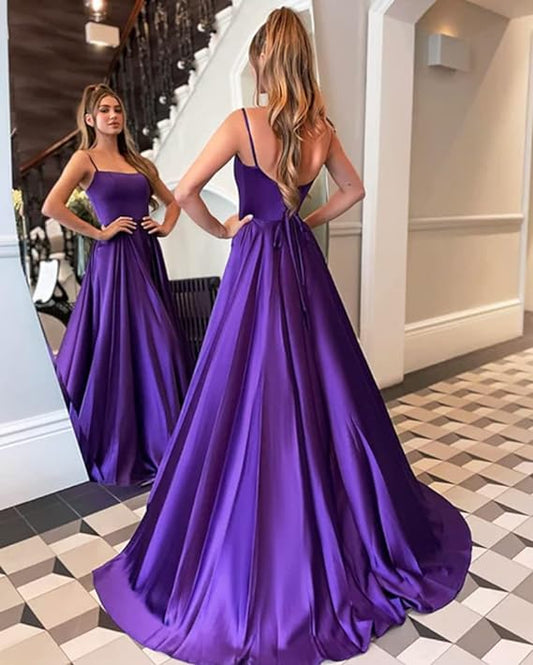 A-line Satin Scoop Neck Long Prom Dress Straps Formal Dress fg4066