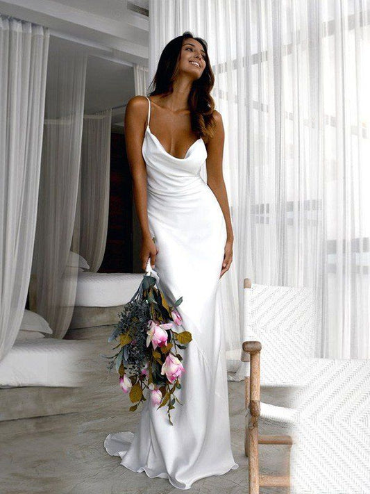 Sexy Simple A Line Bridal Gown Backless Custom Made Wedding Dress fg4766