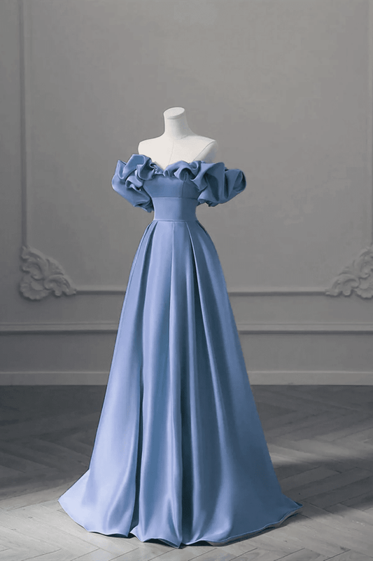 Unique Blue Satin Long Off Shoulder Party Dress, Simple Blue Prom Dress fg4969