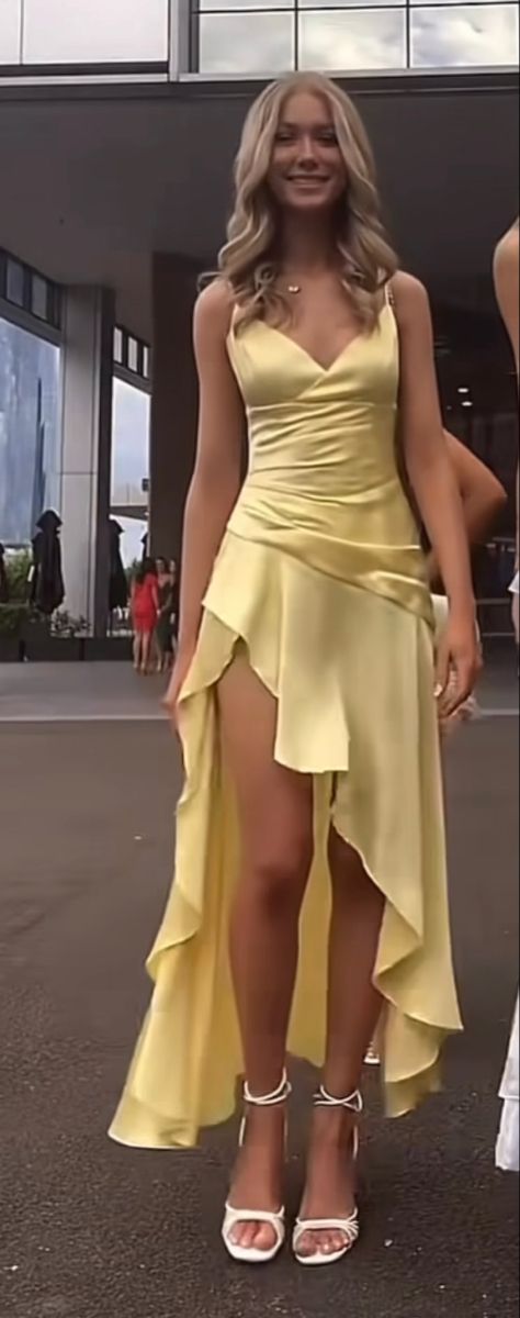 Yellow High-Low Spaghetti Straps Prom Dress Party Dress fg4992
