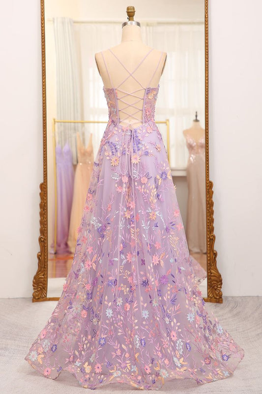 A-Line Tulle Lace Up Long Prom Dress With Appliques And Split fg5027