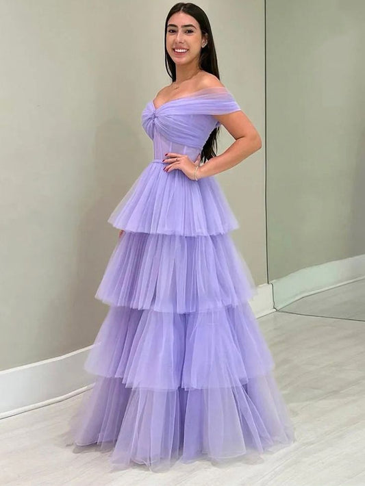 Tulle Floor Length A-Line Prom Dress, Off the Shoulder Evening Party Dress fg5152