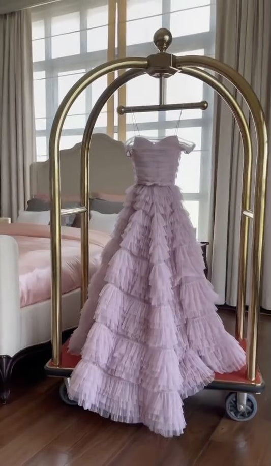 Tulle Prom Dresses, Fashion Formal Dresses, Off The Shoulder Prom Dresses, Evening Dresses fg5146