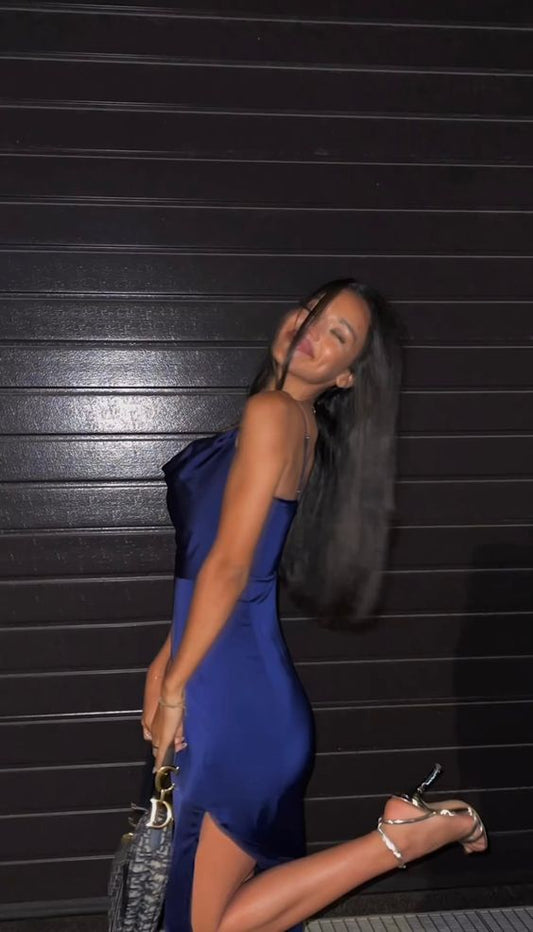 Blue Prom Dress, Evening Dress with Slit fg5303