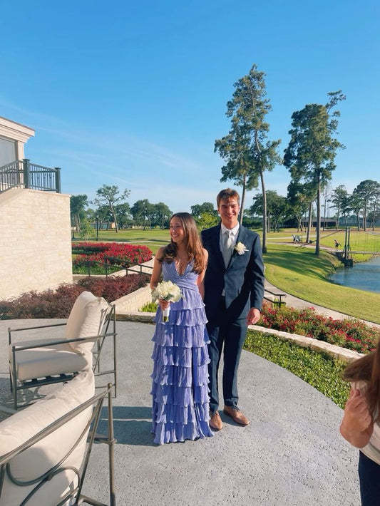 Straps Deep V Neck Appliques A-line Multi-Layers Homecoming Dress fg5301