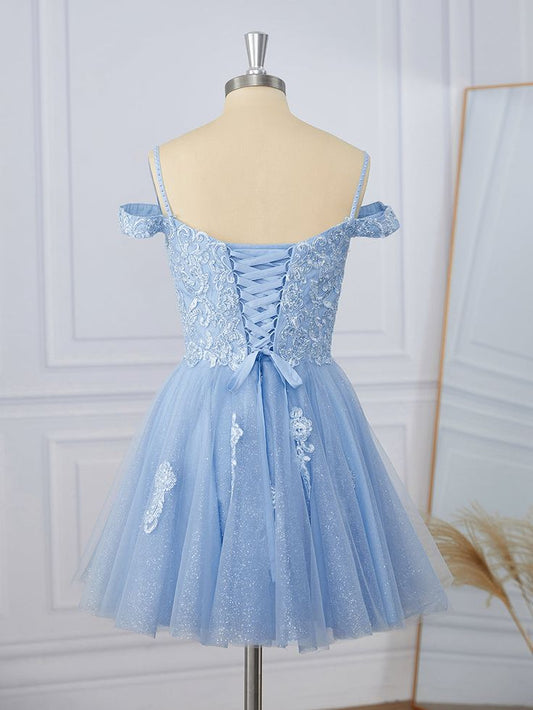 A-line Tulle Off-the-Shoulder Appliques Lace Short/Mini Dress fg5501
