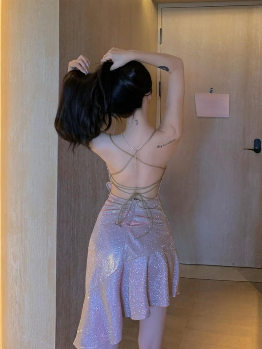 Women's Shiny Sleeveless Dress Sexy Party Backless Tight Bodycon New Mermaid Chic Dress Homecoming Dress fg5875