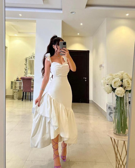 White Straps Ruffle Mermaid Party Gown Arabia Prom Dresses For Women fg6319