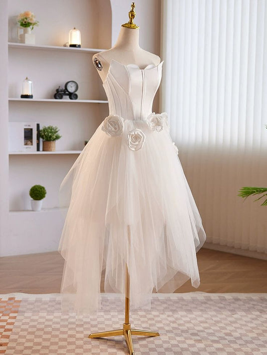 Unique White Tulle Satin Short Prom Dress, White Homecoming Dress fg6369