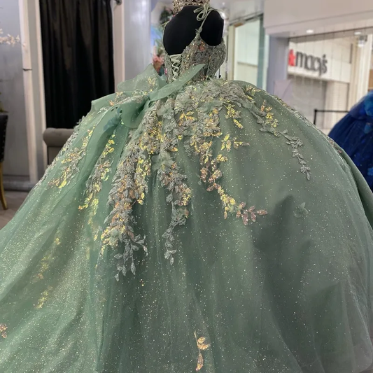Shimmering Light Green Quinceanera Ball Gown Dress with Corset Style fg6579