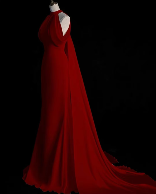 Charming Burgundy Halter Mermaid Evening Dress With Trail fg6654