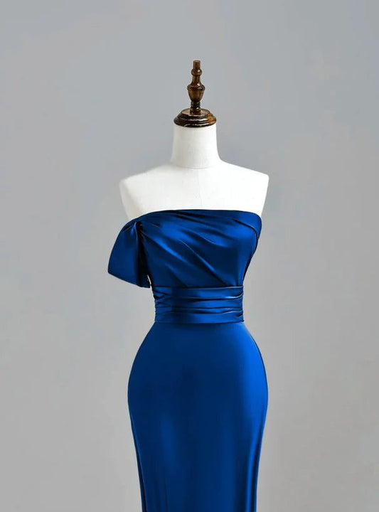Royal Blue Satin Mermaid Long Party Dress, Royal Blue Prom Dress fg6663