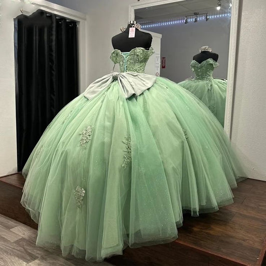 Green Quinceanera Dresses Ball Gown Off The Shoulder Tulle Appliques Sweet 16 Dresses fg6683