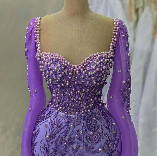 Purple Mermaid Evening Dress Beaded Formal Prom Gown fg7065