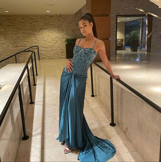 Luxury Beaded Spaghetti Straps Long Prom Dress fg7097