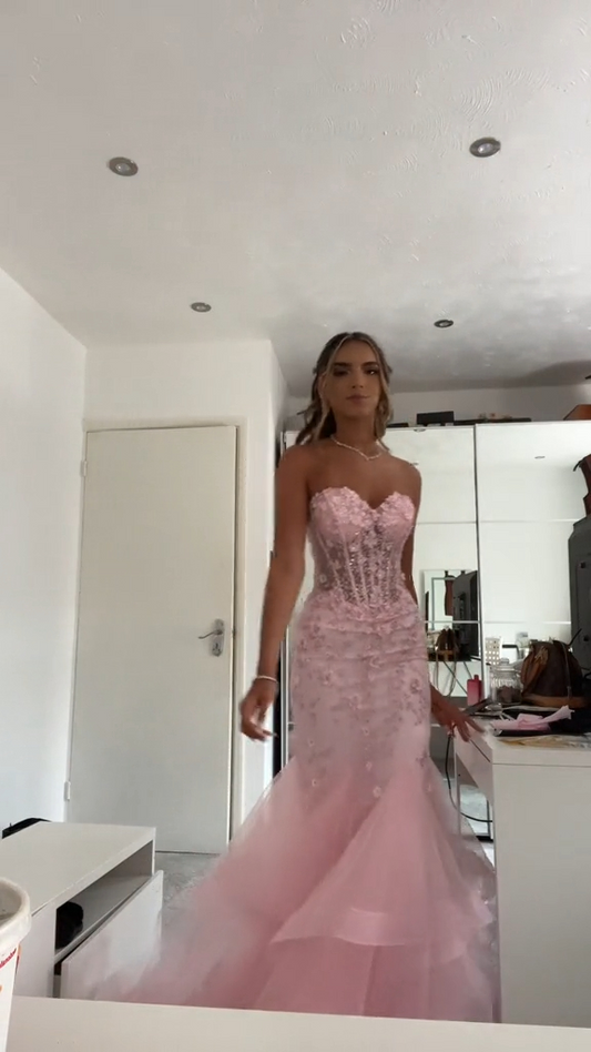 Lace Mermaid Dress Long Sweetheart Formal Evening Lace Up Back Party Dress fg7254