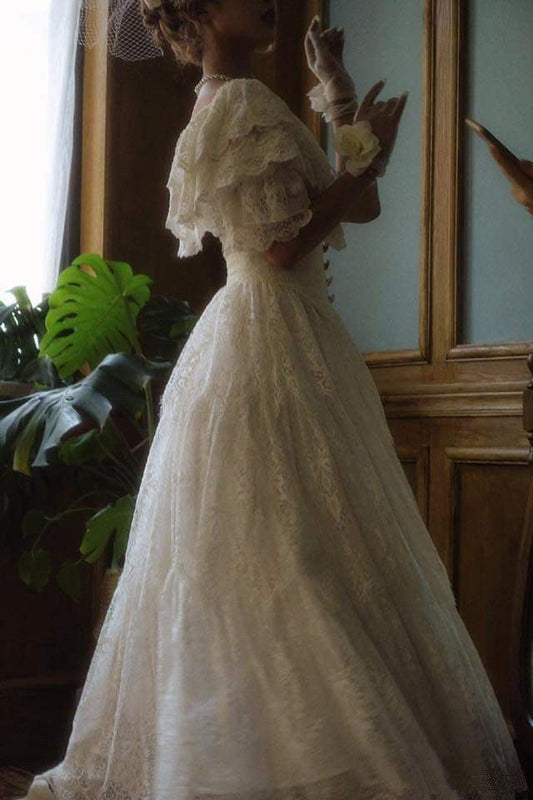 A Line Off Shoulder Wedding Dress Lace Princess Dress fg7295
