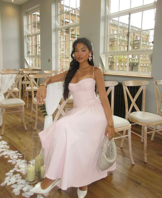 Women's Retro Pink Maxi Dress Sexy Fashion Party Evening Gown fg7266