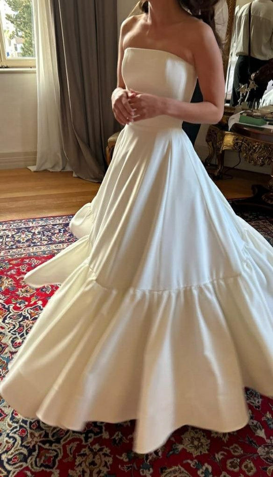 A Line Stunning Strapless Satin Wedding Dresses With Beads fg7297