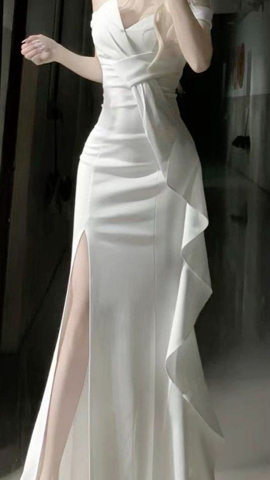 White Off Shoulder Long Prom Gown Evening Dress fg7392