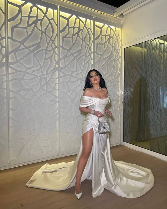 White Simple Prom Party Dress Long Formal Evening Dress fg7483