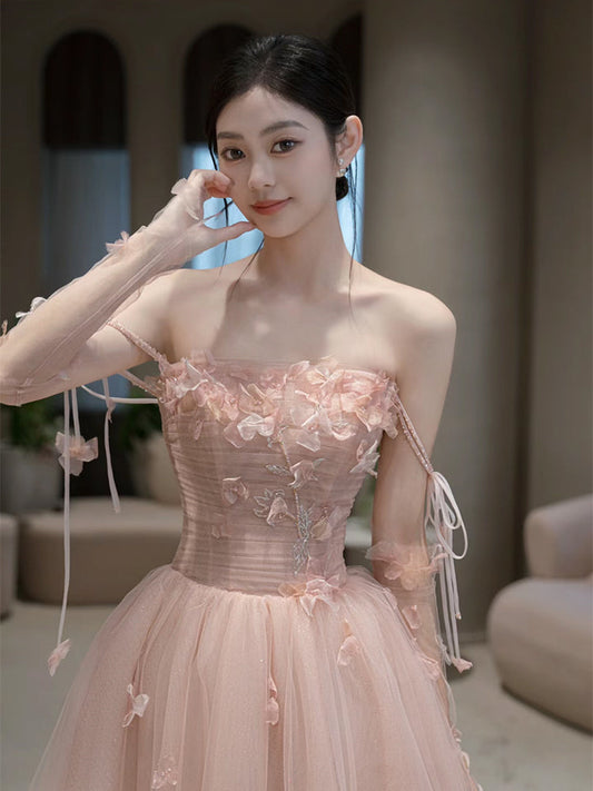 A Line Pink Long Formal Dress Tulle Evening Dresses fg7673