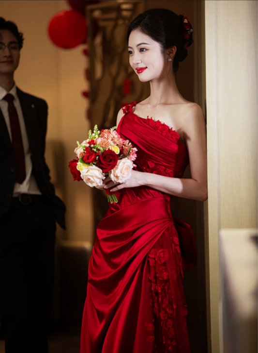 Red Long Formal Dress Satin Evening Dresses fg7671