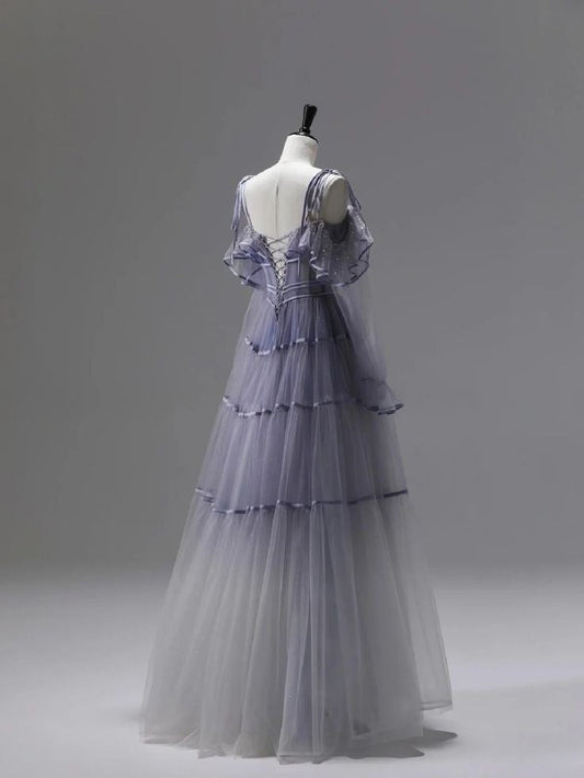A Line Purple Tulle Long Prom Dress Sexy Evening Dresses fg7659