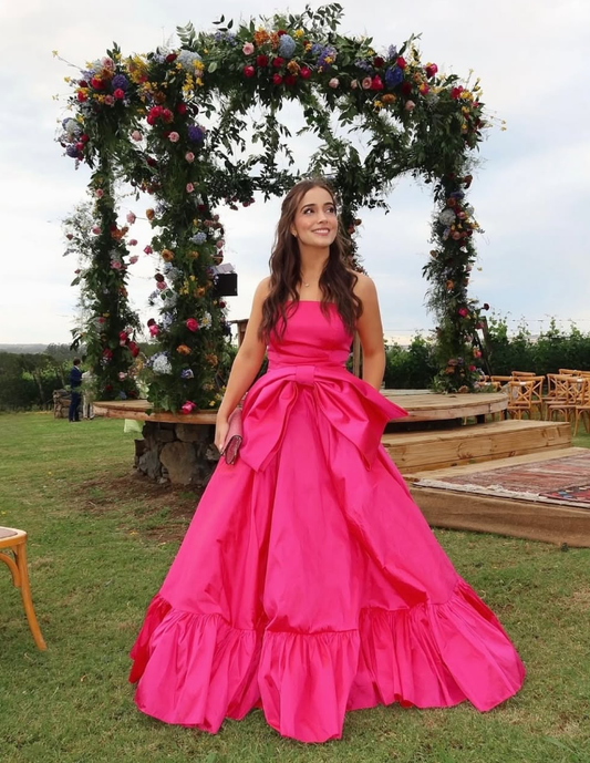 Hot Pink a line Party Prom Dresses with BowKnot fg2518