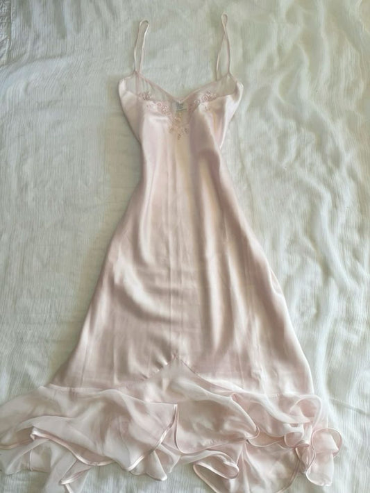 Gorgeous Pink Chiffon Beaded Spaghetti Straps Short Prom Dresses Vintage Evening Gowns ED02274