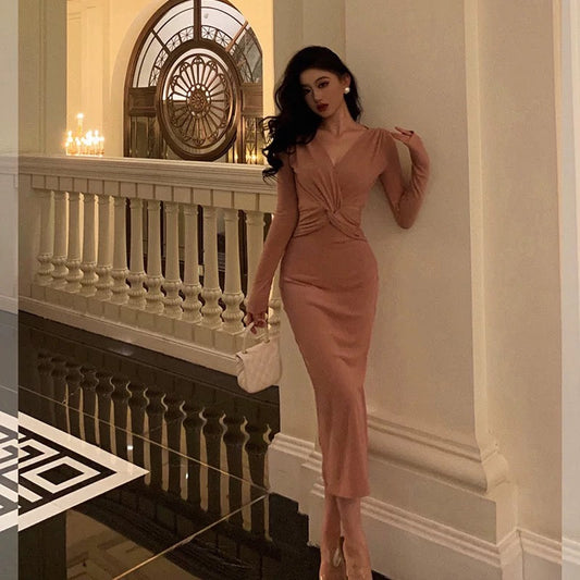 Sexy Sheath V Neckline Pink Pleated Prom Dresses Birthday Outfits Evening Gown SD1016