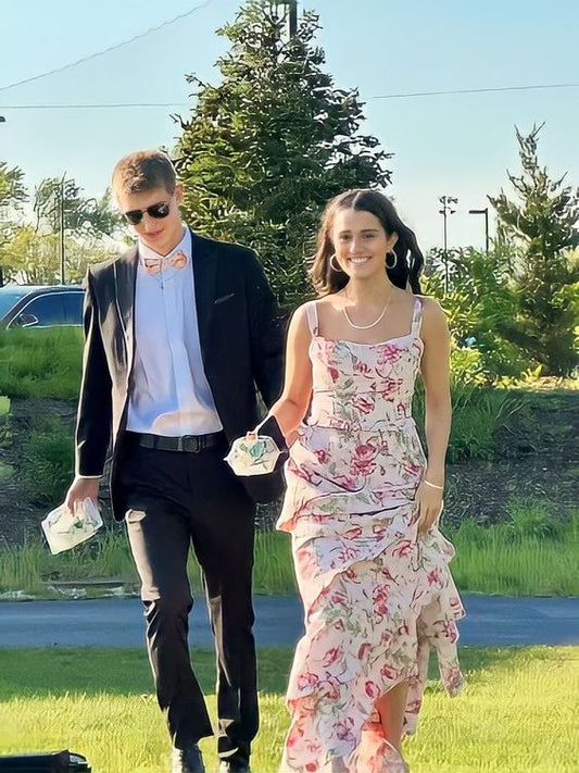 Sexy Mermaid Long Pink Floral Prom Dress Party Dresses P1587