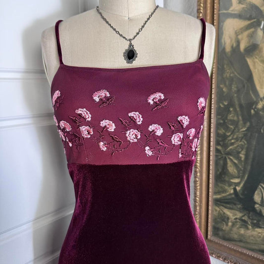 Dark red vintage 90s velvet floral short homecoming formal prom dress prom dress evening dress party dress gh4344