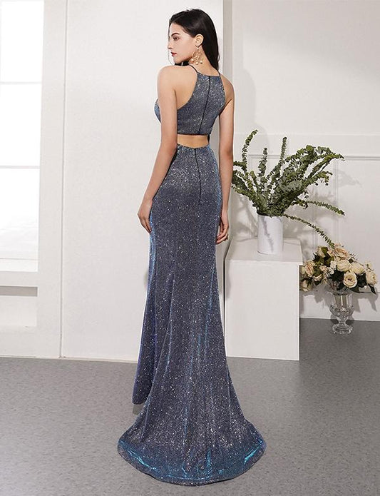 Sexy Mermaid Gray Prom Dresses Halter Evening Dress Split Front cg2352