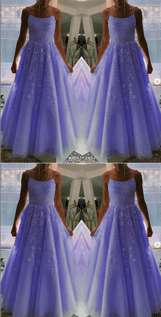 Blue tulle lace long prom dress, evening dress cg5243