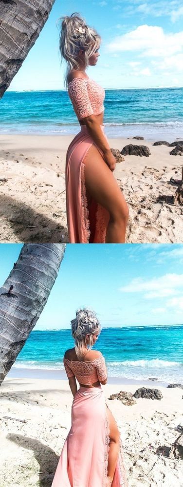 Charming Two Piece Prom Dress, Sexy Sleeveless Long Evening Dress with Slit cg5382