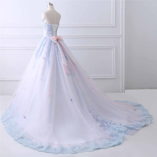 Princess light blue tulle strapless high waist long A-line evening dress, long lace formal prom dress cg5451