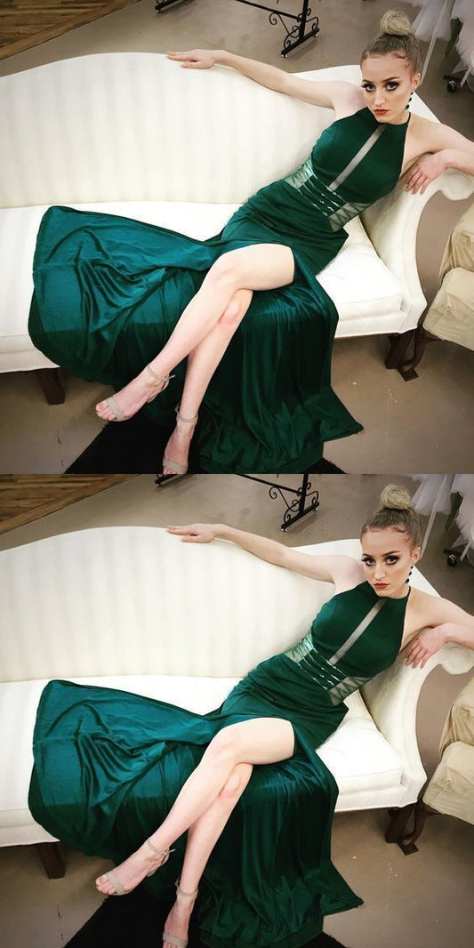 Emerald Green Long Prom Dress with Slit,Evening Formal Dress,High Neck Prom Dress cg5603