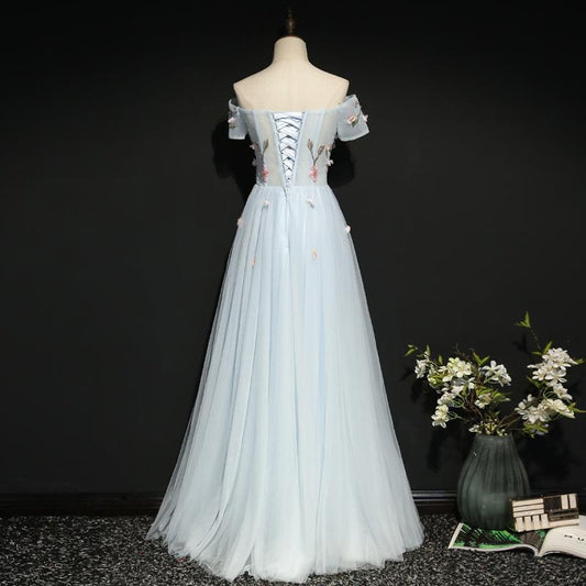 Light Blue Off Shoulder A-Line Flower Party Dress, New Prom Dress 2020 cg5755