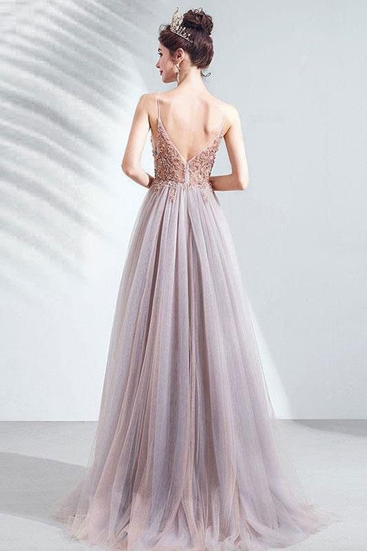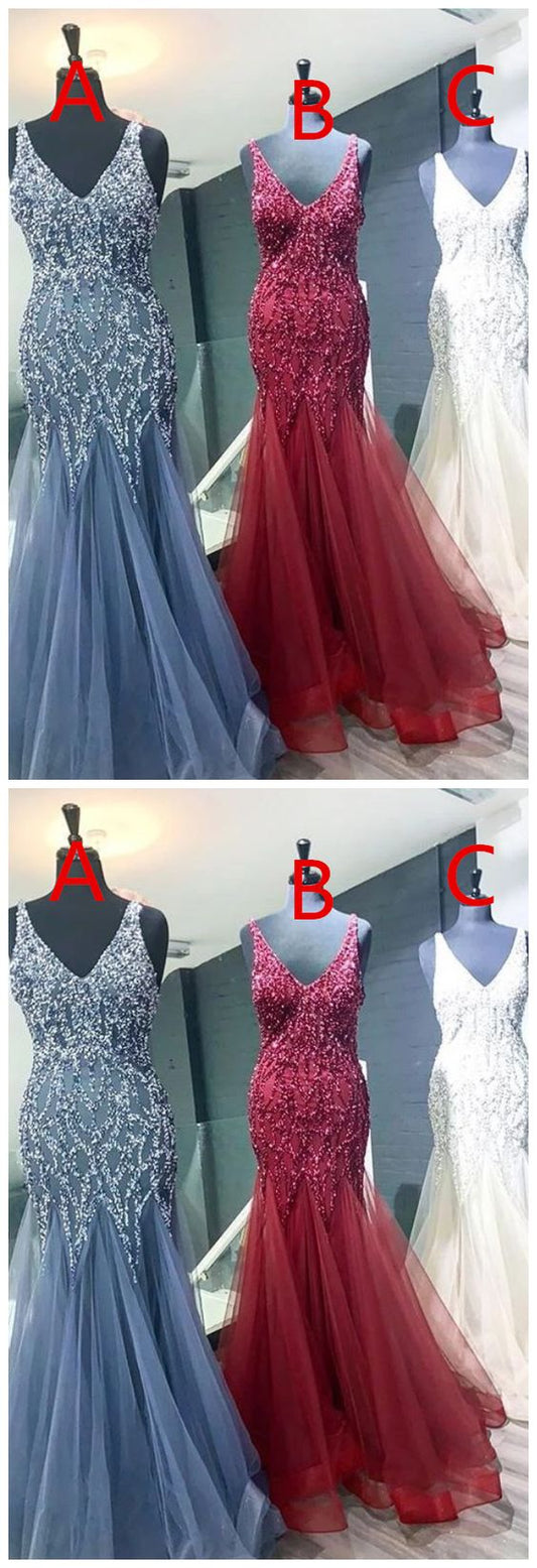 Elegant v neck tulle beads long prom dress tulle formal dress cg5756