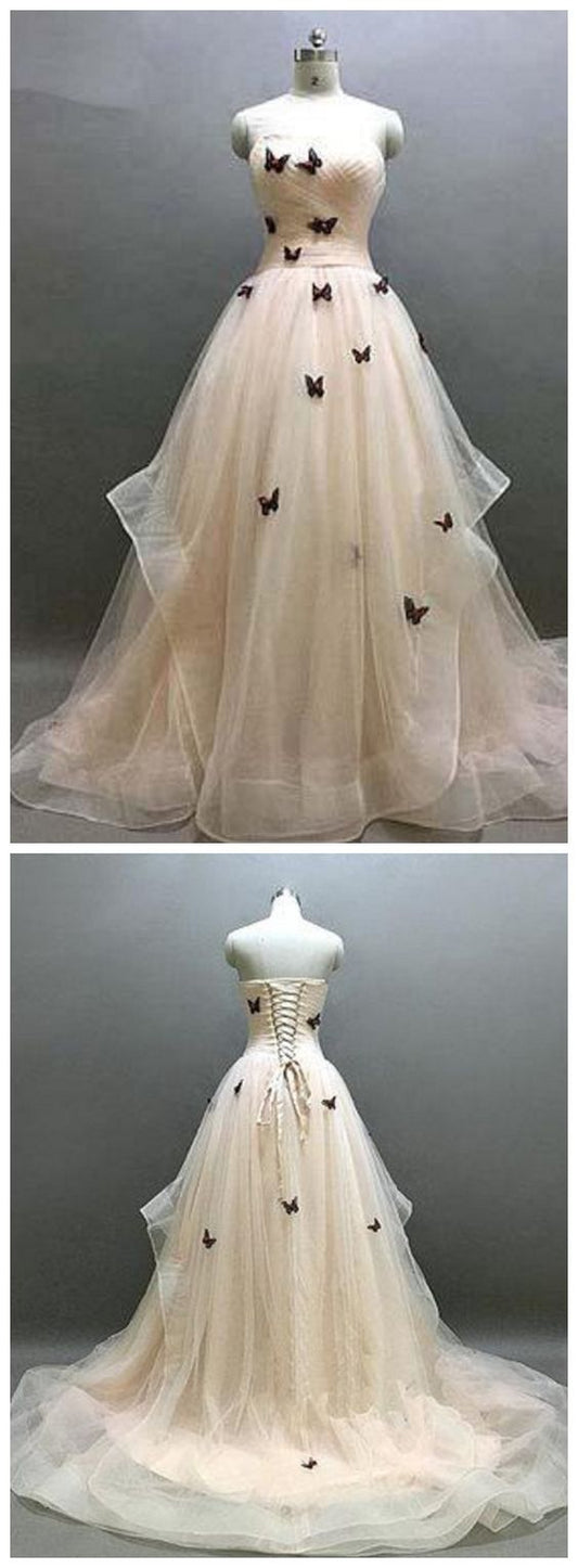 Sweetheart A-line Sweep Train Butterfly Long Prom Dress cg5784
