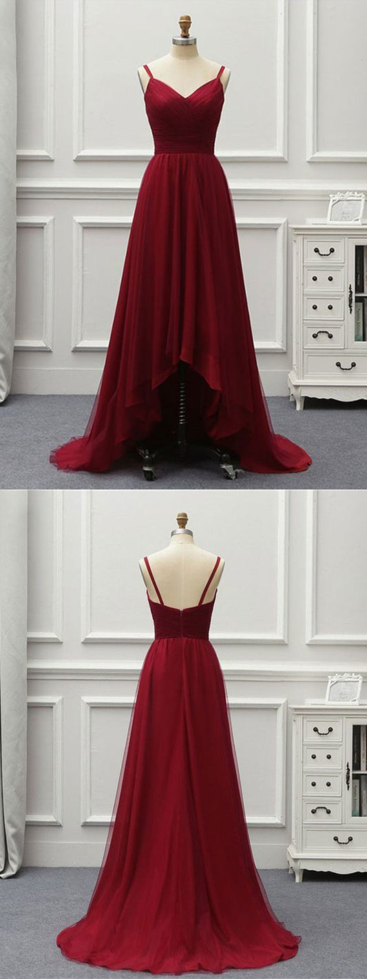 A Line High Low Backless Burgundy Tulle Long Prom Dresses cg6928