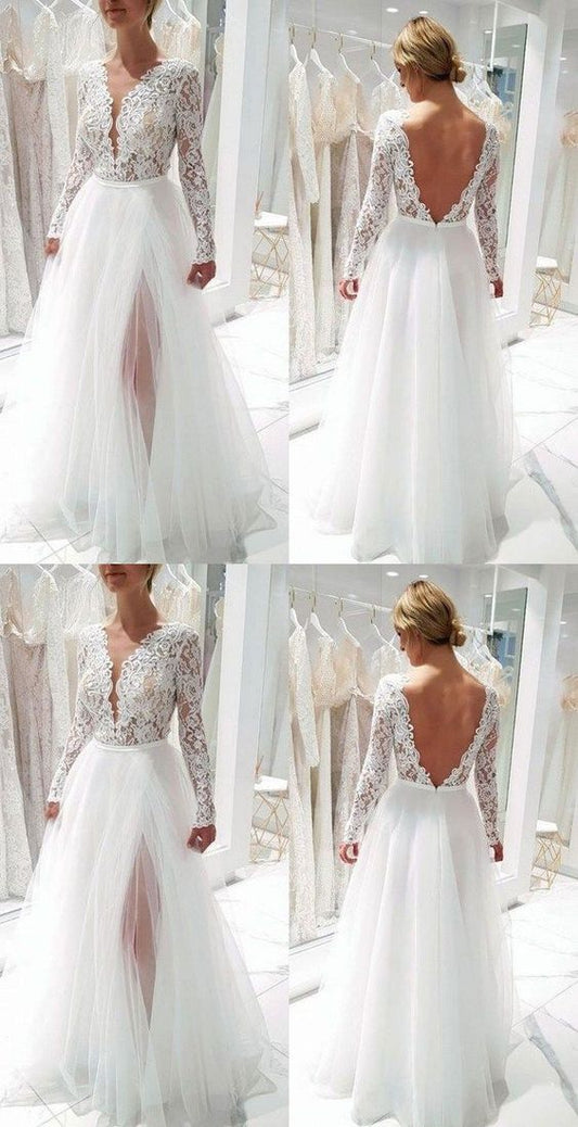 Deep V Neck V Back Wedding prom Dresses with Appliques cg7655